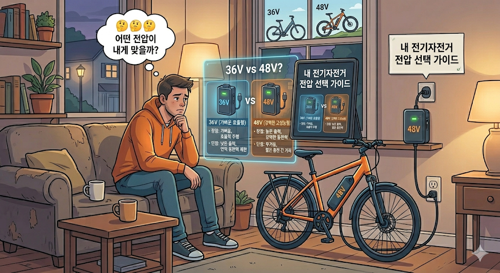전기자전거 배터리 36V와 48V는 숫자 하나 차이지만, 출력부터 주행거리, 등판력, 충전 시간까지 체감 성능이 꽤 달라집니다.