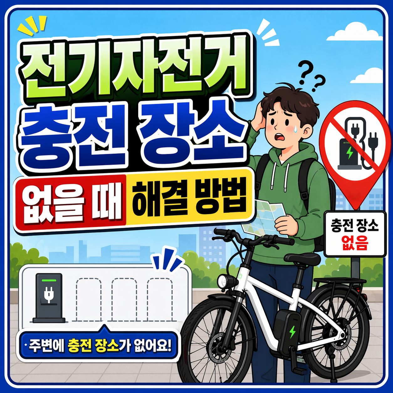 전기자전거 충전 장소는 아직 표준화된 공공 인프라가 부족해 고정적으로 확보하기 어렵습니다.